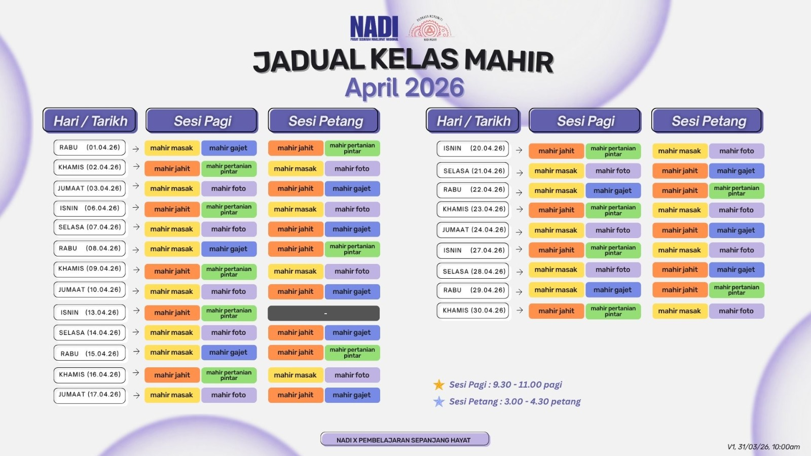 SLS MAHIR UNTUK APRIL (Q2,2026) Salam semua ππ§΅β¨Jom sertai Kelas SLS Mahir Jahit: Pouch Bag Comel bersama Cikgu Wawa! π― Apa yang anda akan dapat:π Belajar step-by-step jahit pouch bag comelπ Sesuai untuk beginnerπ° Boleh jana income tambahan dengan hasil […]