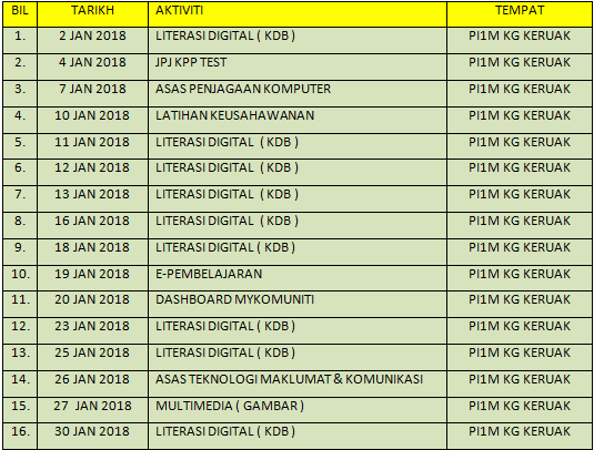 JADUAL AKTIVITI JANUARI 2018