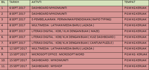 JADUAL AKTIVITI SEPTEMBER 2017